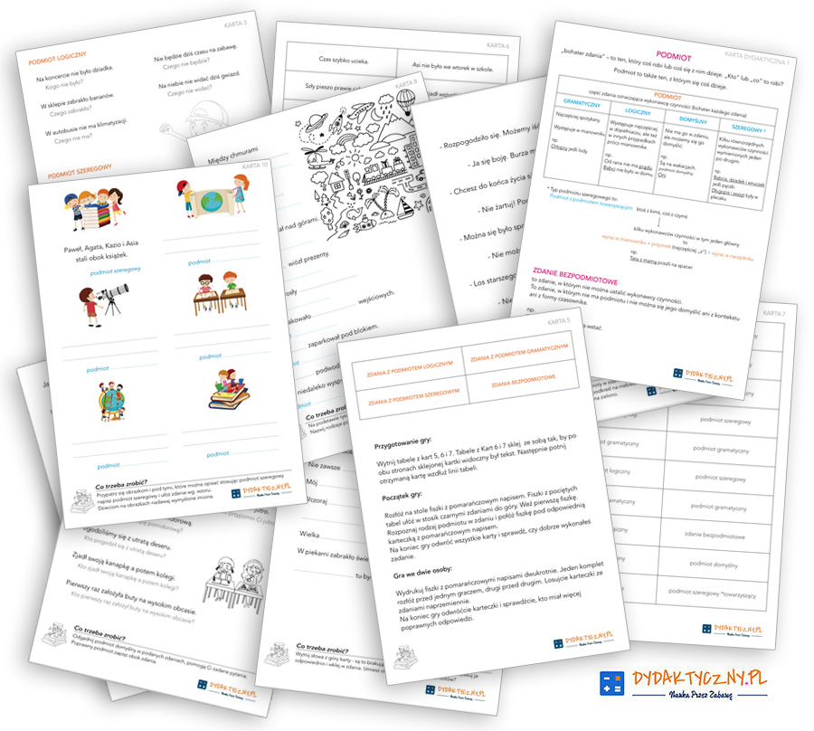 Zestaw 10 Kart Pracy – Podmiot + Karta Dydaktyczna to:
