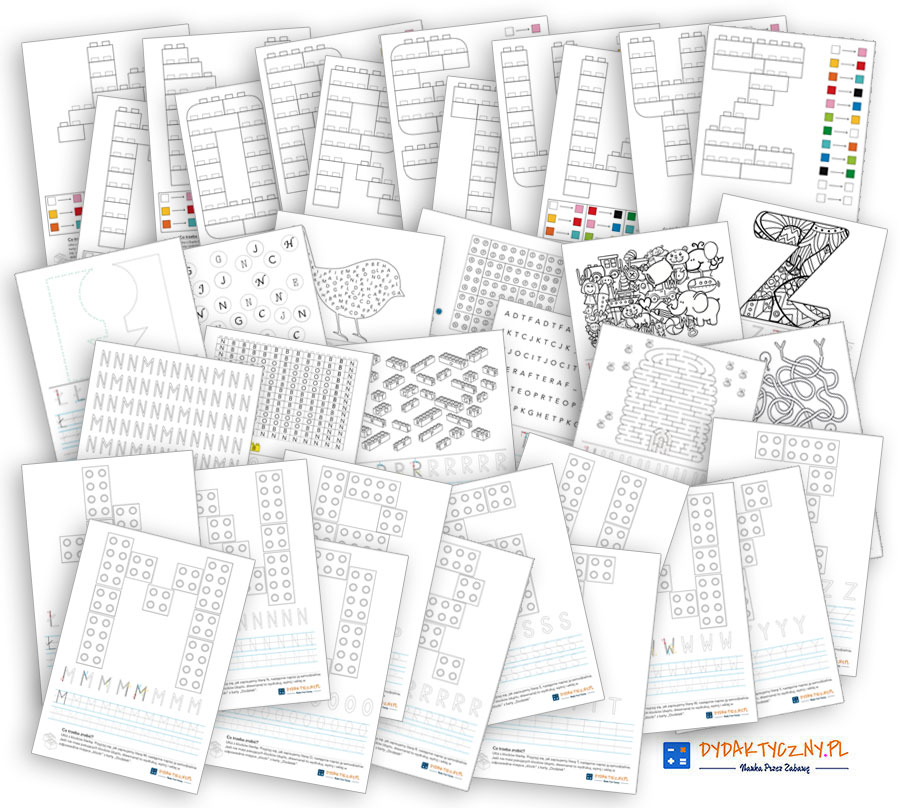 36 Kart Pracy – Alfabet Malucha – Poznajemy litery z klockami – część 2 od Ł do Z to druga z dwóch części zestawu Alfabetu Malucha.