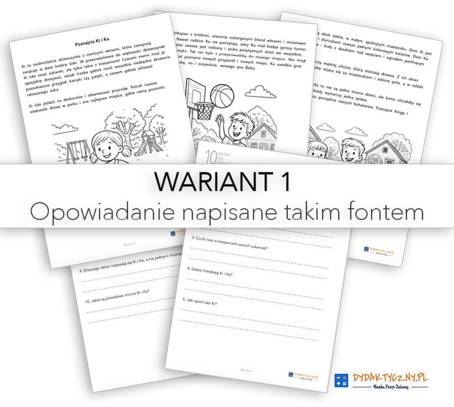 fontem przyjaznym dzieciom z dodatkowym po-dzia-łem trud-niej-szych słów na sy-la-by,
